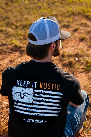 Soft cotton shirts with vinyl designs all hand pressed! Comes in various sizes for all family members to wear and enjoy! Material- 90% Ring spun cotton/ 10% Polyester. Design- "Keep It Rustic - Scrapped Flag"